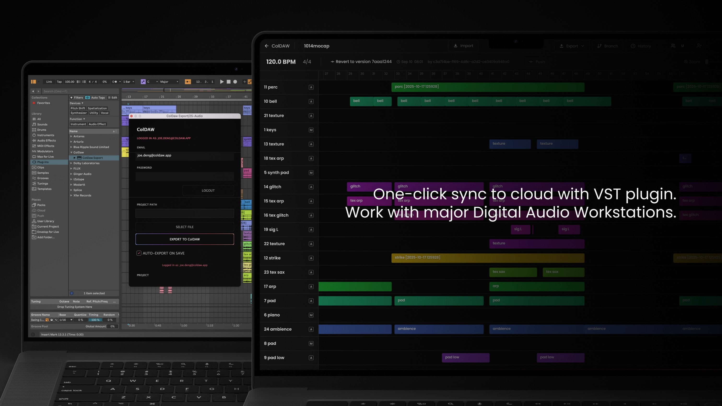 To connect local creative work with remote collaboration, ColDAW integrates a lightweight in-DAW VST plugin with a web-based platform. Changes made inside a local DAW are synchronized to the cloud, while updates from collaborators are reflected back into the DAW environment.
