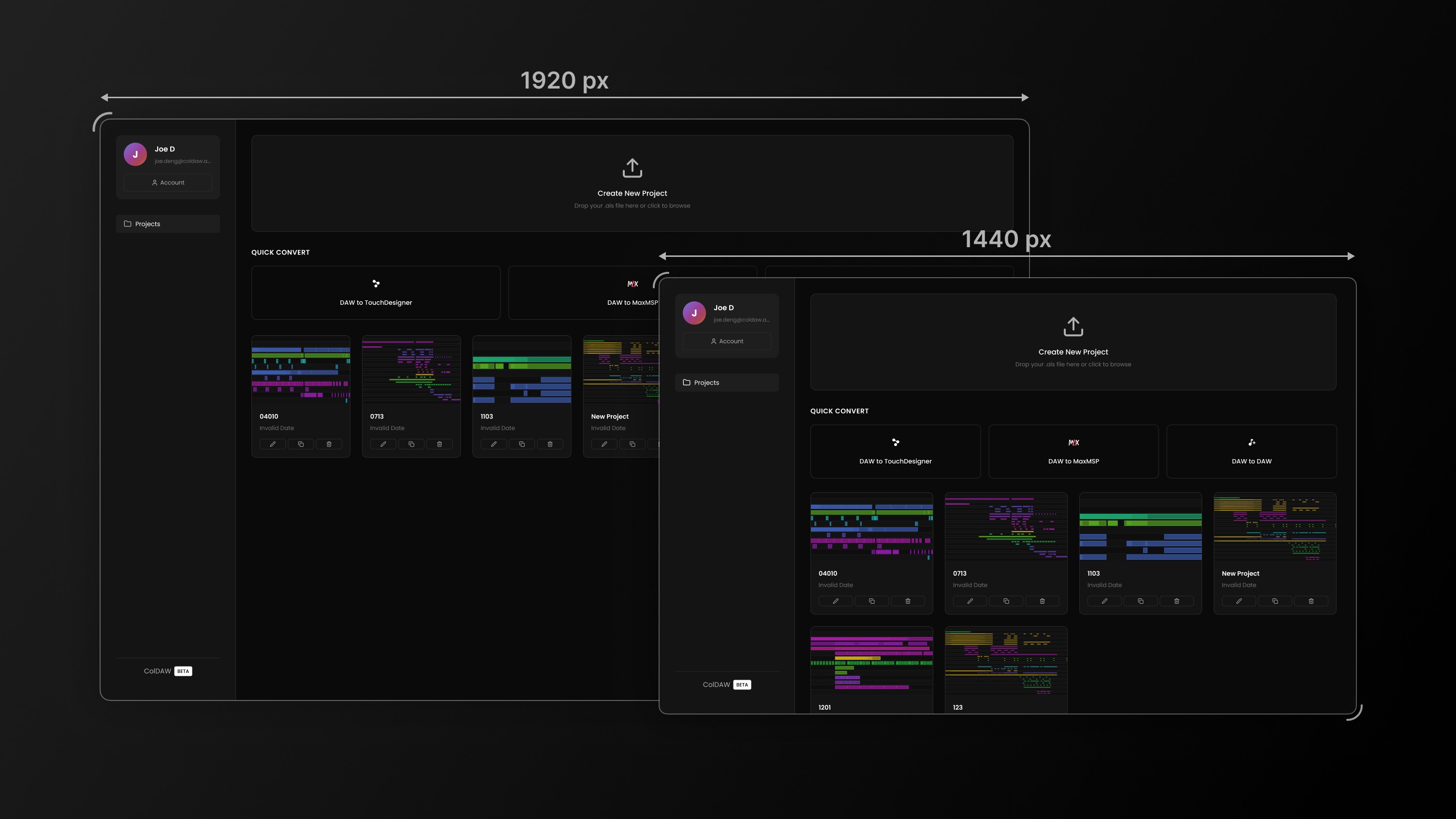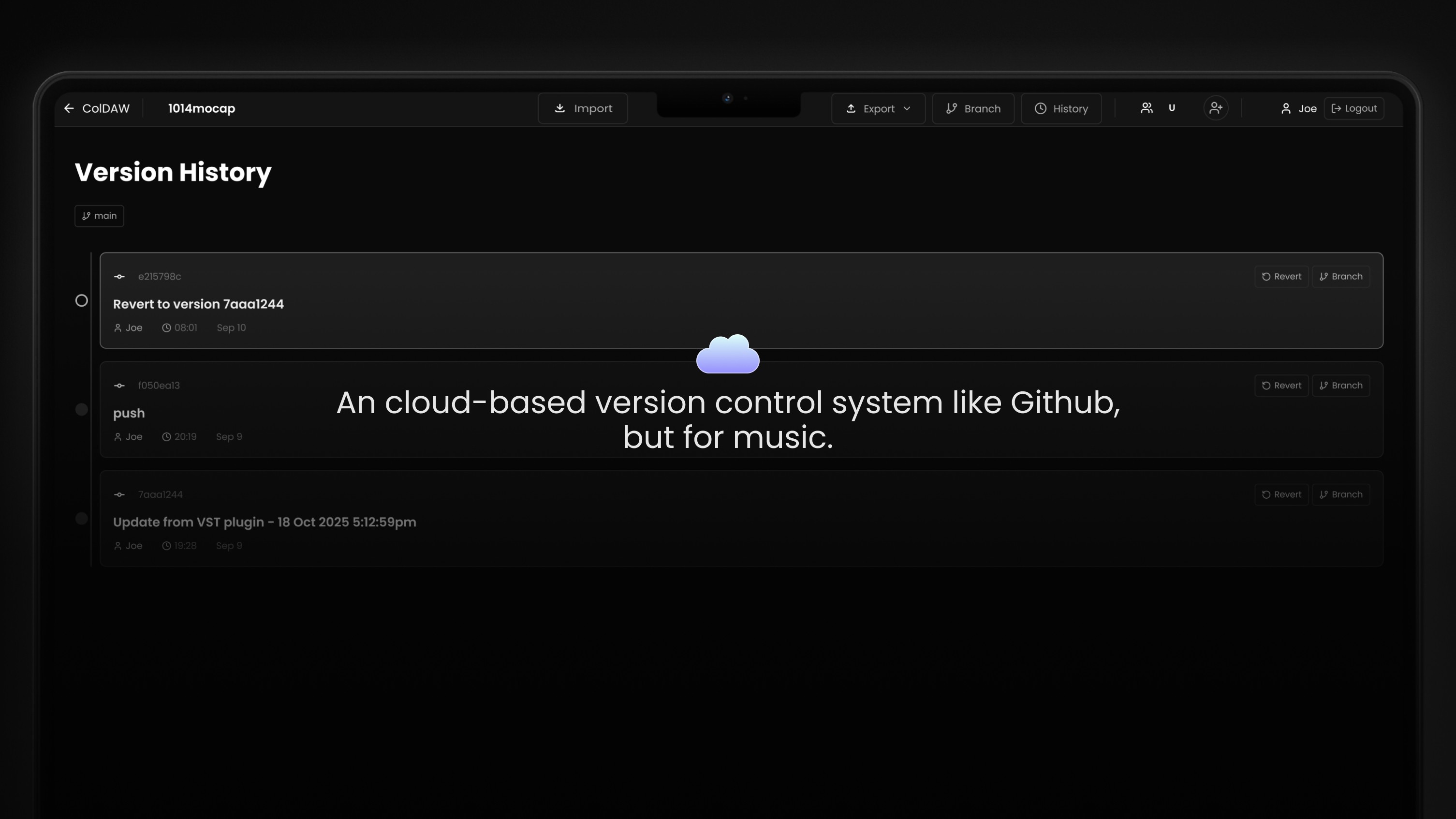 All project data in ColDAW is stored and managed in the cloud, making collaboration persistent and accessible across locations and time zones. Cloud storage enables clear version history, centralized project organization, and asynchronous collaboration, allowing creators to review and manage projects without requiring local DAW access.