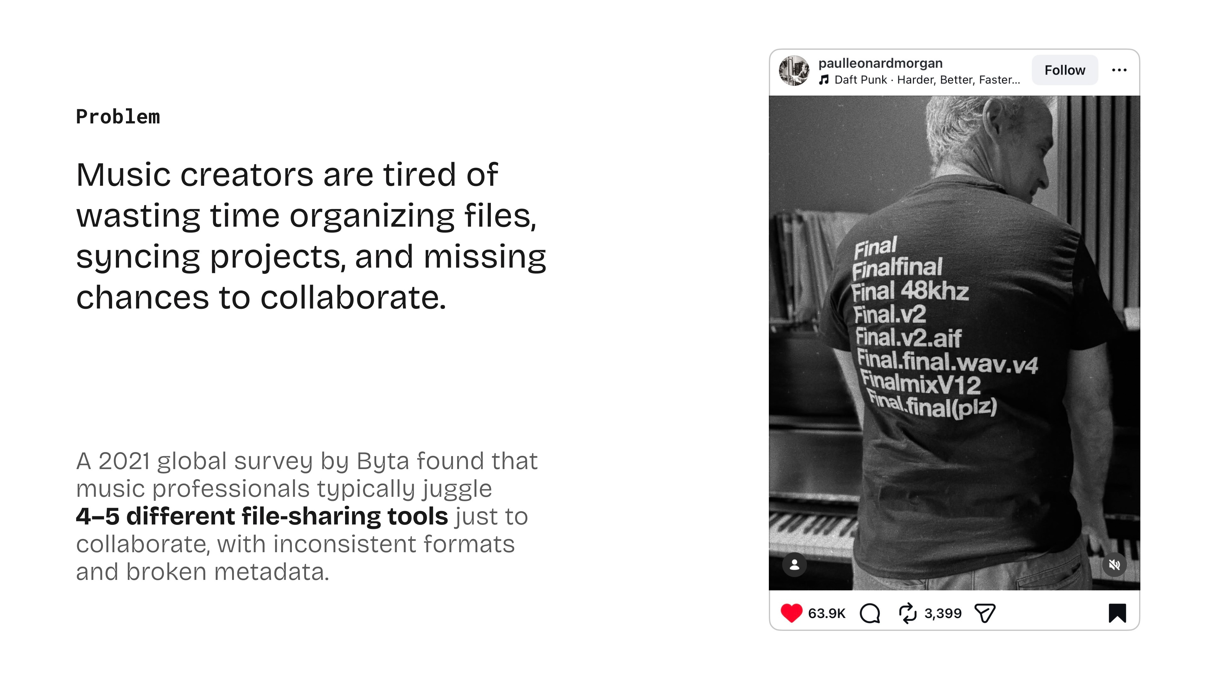 All project data in ColDAW is stored and managed in the cloud, making collaboration persistent and accessible across locations. Cloud storage enables clear version history, centralized project organization, and asynchronous collaboration, allowing creators to review and manage projects without requiring local DAW access.