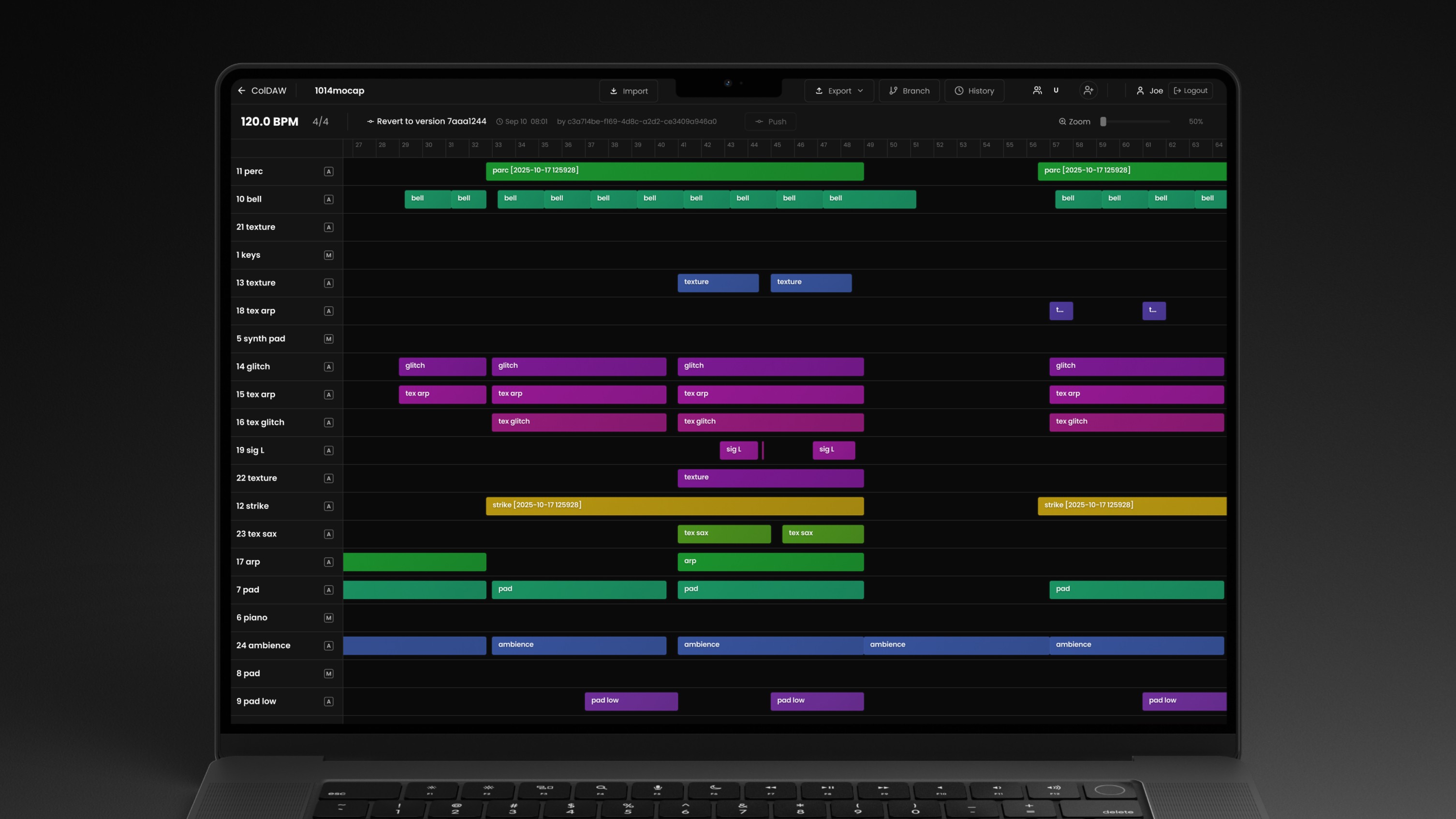 ColDAW is designed around interaction patterns that professional DAW users already understand. The interface mirrors established DAW concepts such as tracks, timelines, clips, and project states, allowing creators to navigate, review, and modify projects without learning a new mental model. By preserving familiar user journeys, ColDAW minimizes onboarding friction and keeps creative attention focused on making music rather than learning new tools.