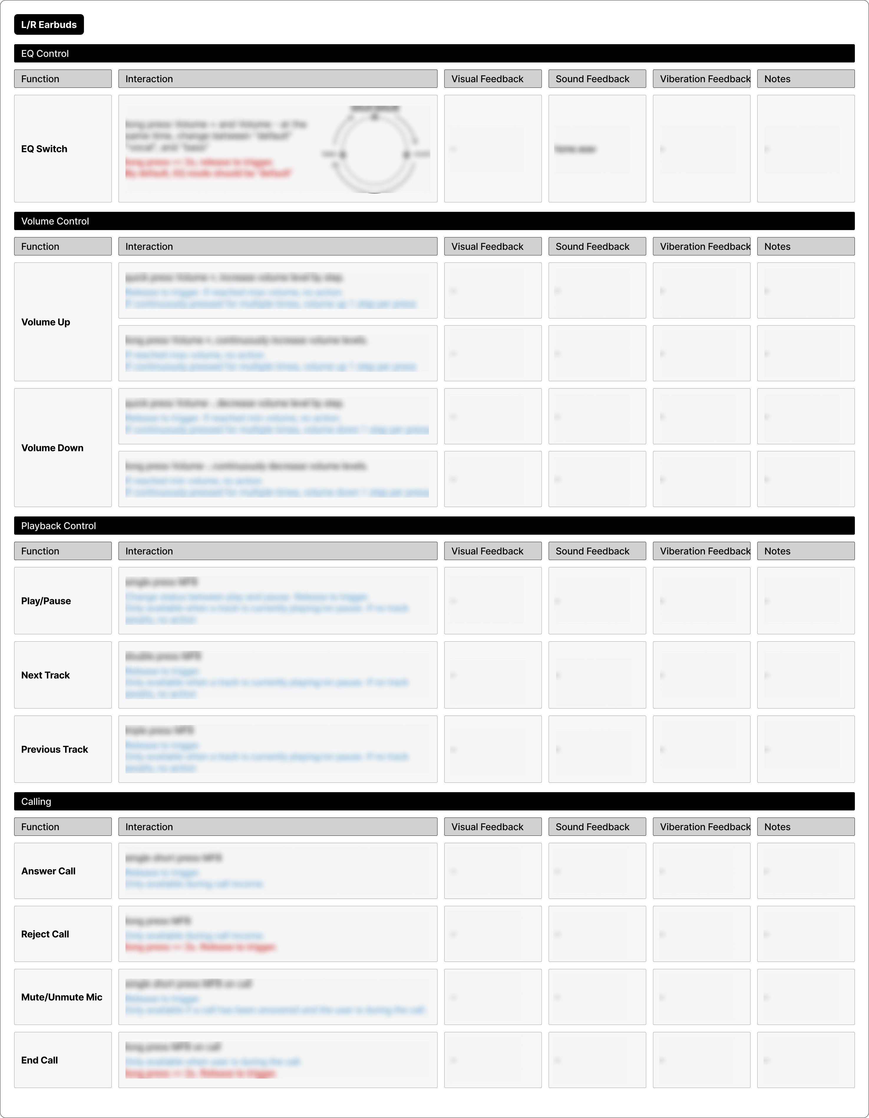 Because there is no widely adopted industry-standard template for hardware interaction design systems, this work required exploration and continuous iteration. The resulting improvements increased clarity and reusability, aligning design, firmware, and QA around a shared interaction language while informing future hardware development.