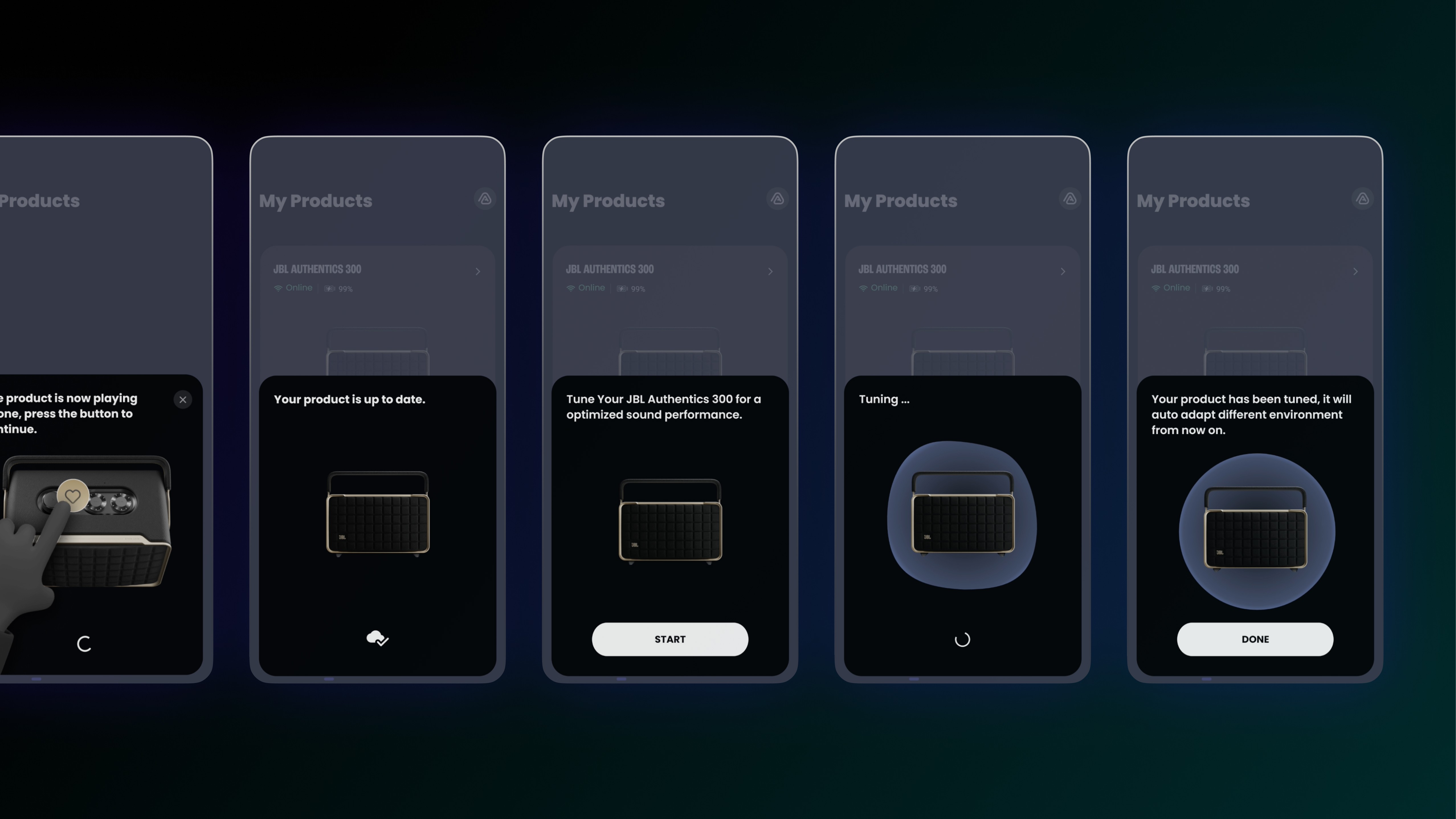 Calibration tones were designed using acoustic guitars and basses, aligning with JBL’s existing startup and connection sounds. This ensures functional signals still feel familiar and on-brand.