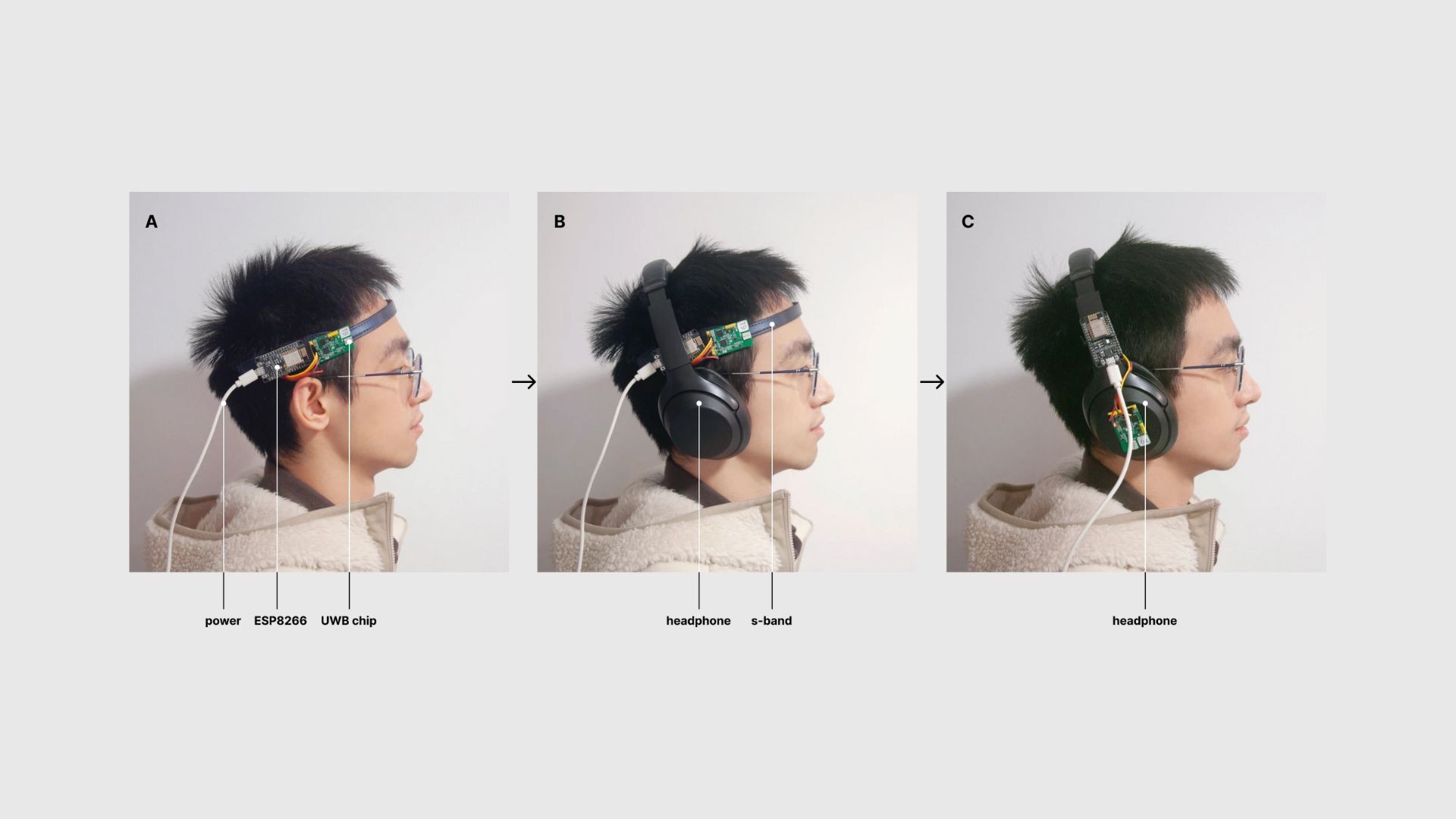 The system uses UWB anchors arranged in a triangulation setup and wearable UWB tags controlled by microcontrollers. By calculating signal time-of-flight, the system continuously estimates listener position with high precision across spaces up to tens of meters.