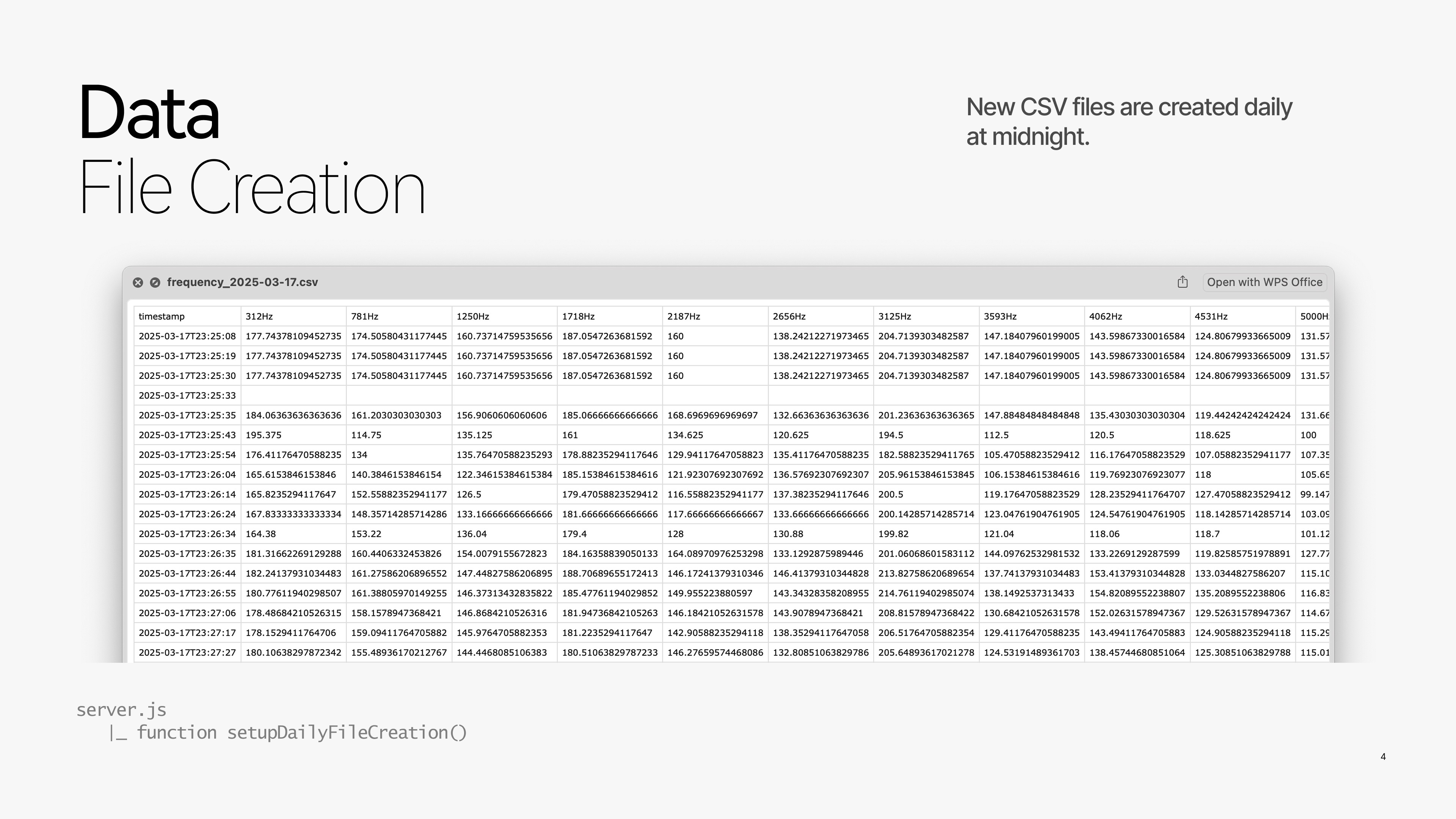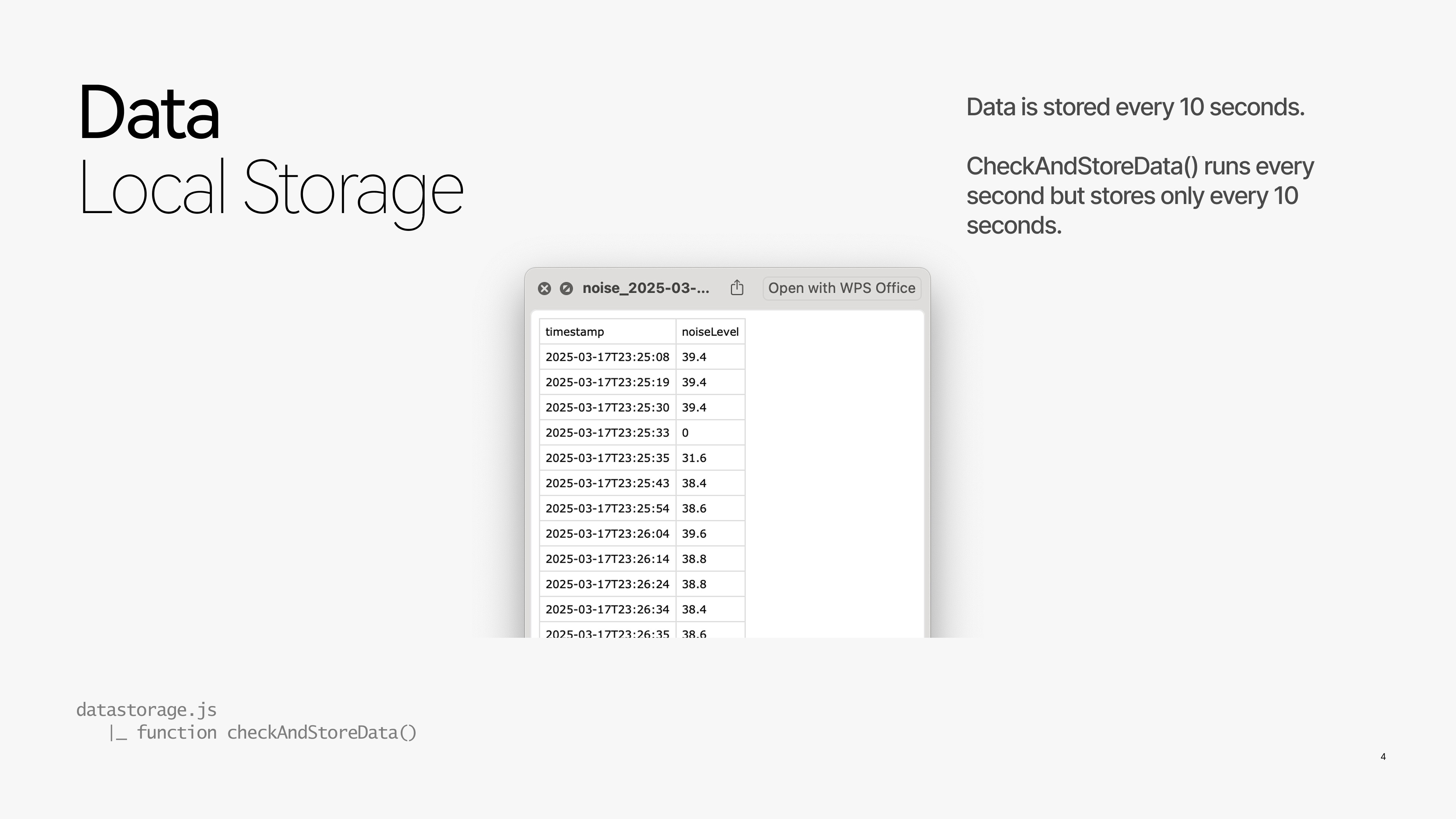 Behind the interface, sensor data is periodically stored locally and organized into daily CSV files. This design supports historical analysis while keeping real-time interactions responsive. By decoupling sensing, visualization, and storage, the system remains stable even under network interruptions or resource constraints.